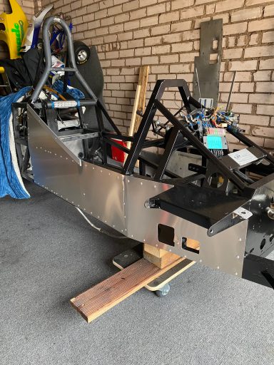 Im nächsten Schritt wurde die Aluminiumhaut erneuert: passgenau zugeschnitten, entgratet und mit neuen Nieten befestigt. So entstand ein klarer, präziser Aufbau, der den technischen Charakter des Fahrzeugs betont und die Grundlage für den weiteren Wiederaufbau bildet.