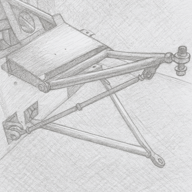 Im Anschluss erfolgte eine technische Sicht- und Maßkontrolle der Gelenkverbindungen, Kugelpfannen, Lager und Bolzen. Verschlissene oder eingelaufene Teile wurden ersetzt, ebenso sämtliche Sicherungsmuttern und Unterlegscheiben. Die beweglichen Teile erhielten frisches Fett, während die Metallflächen sorgfältig gereinigt, geschliffen und anschließend neu lackiert wurden – in dem charakteristischen Schwarz, das dem Originalzustand der frühen 1990er-Jahre entspricht.