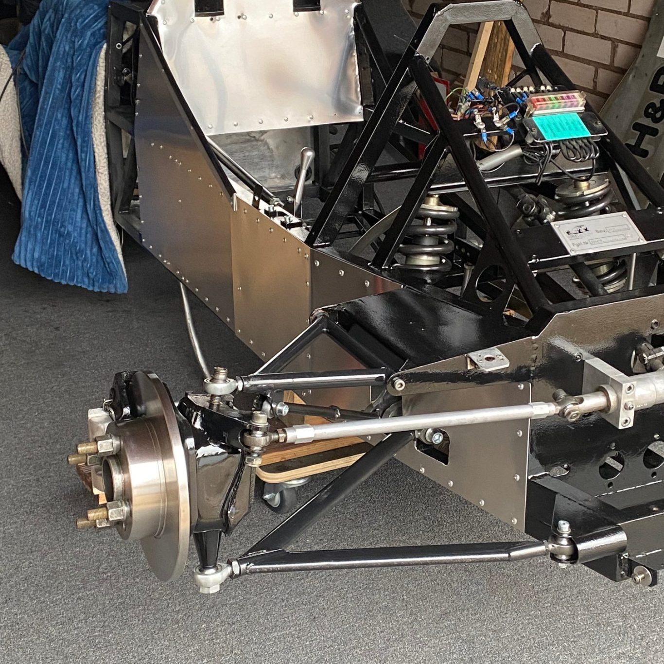 Das Fahrwerk bestimmt, wie präzise sich der Wagen später auf der Strecke bewegen lässt. Gerade bei einem leichten Monoposto wie dem Formel König sind Geometrie und Federung entscheidend für Stabilität und Fahrbarkeit.